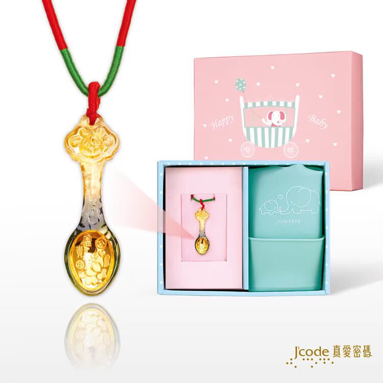 一、彌月黃金禮盒高貴款 – 一生好命金湯匙墜